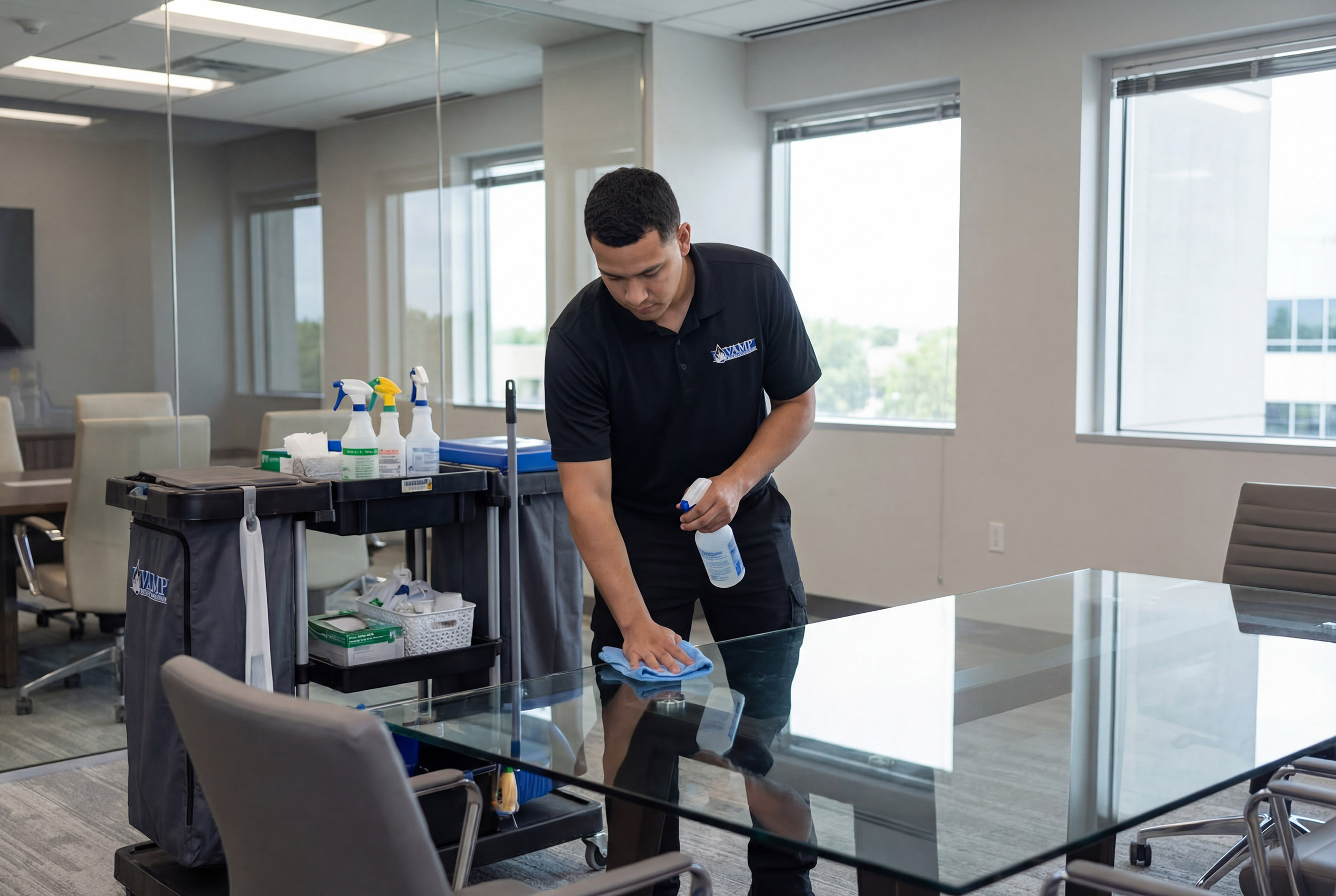 At Vamp Building Maintenance (VBM), we specialize in delivering high-quality office cleaning services that enhance workplace appearance, productivity, and health. We understand that every office environment is unique, which is why we tailor our cleaning programs to meet the specific needs of your facility, schedule, and staff.